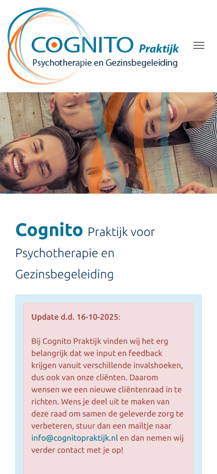 Cognito Praktijk biedt laagdrempelige psychologische zorg voor kinderen, jongeren en volwassenen. Met een vaste behandelaar van intake tot afsluiting werken we in een kleinschalige en vertrouwde setting aan herstel, zowel in de praktijk als online.